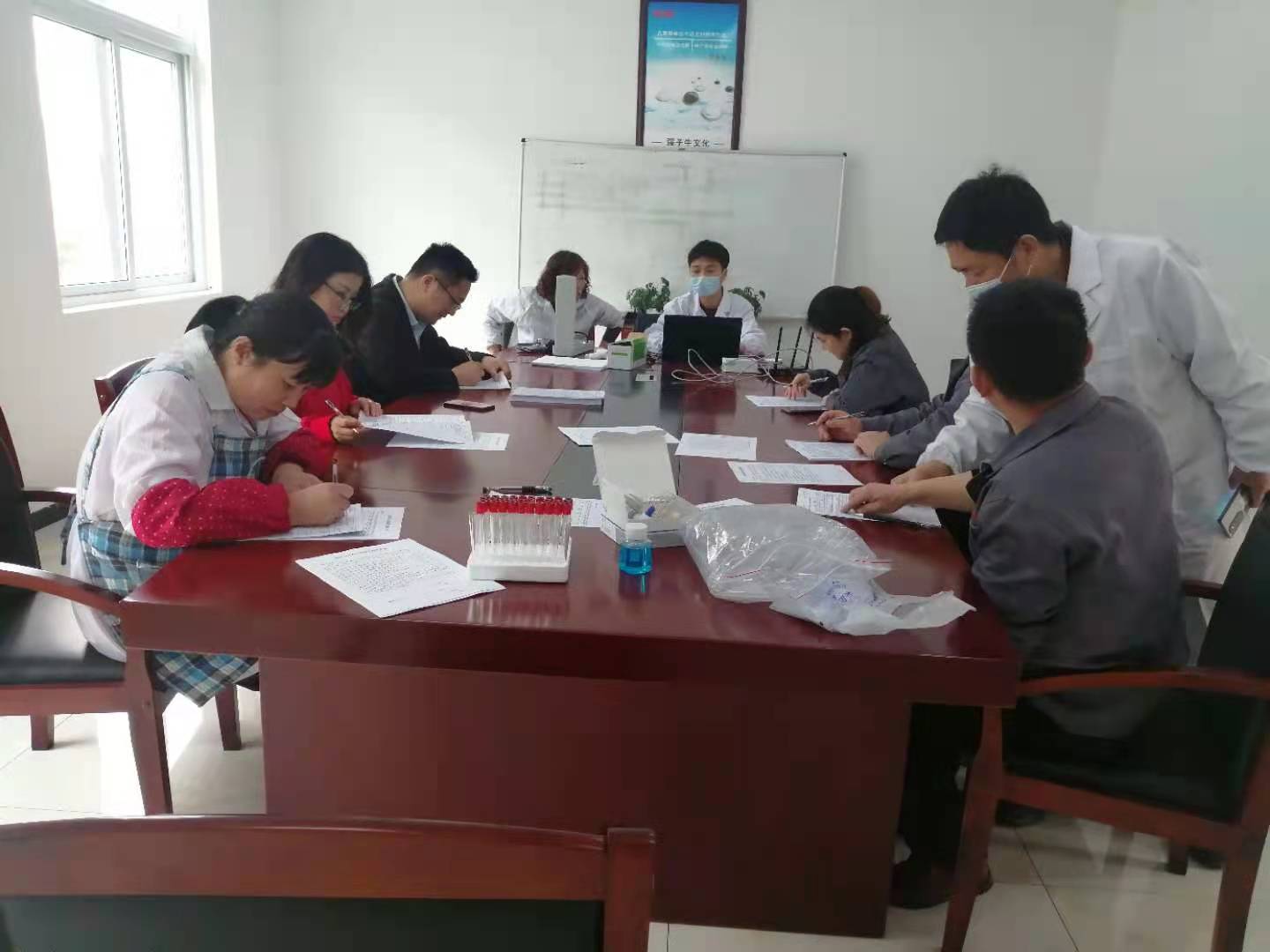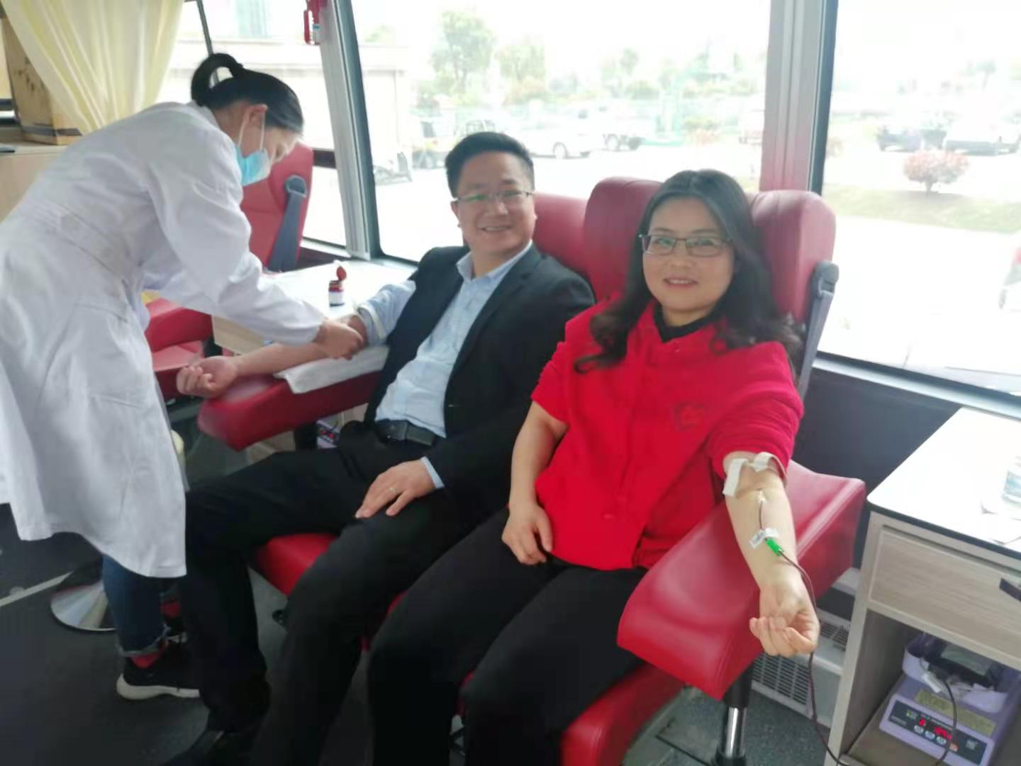 上午9時許,在公司會議室,無償獻血的同事們有條不紊地填寫獻血登記表,測量血壓,抽血化驗。